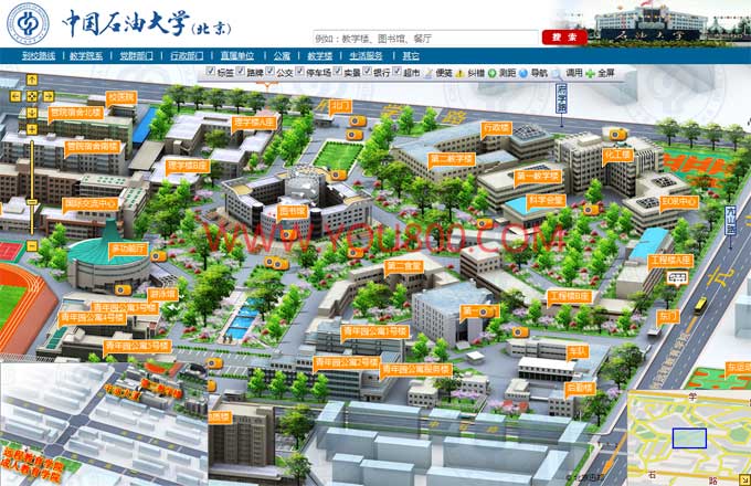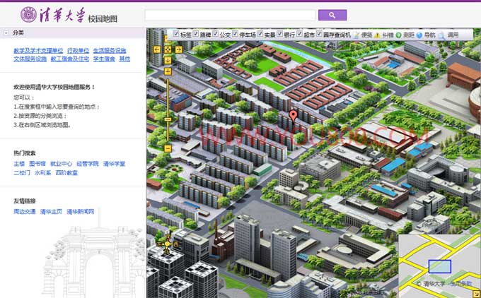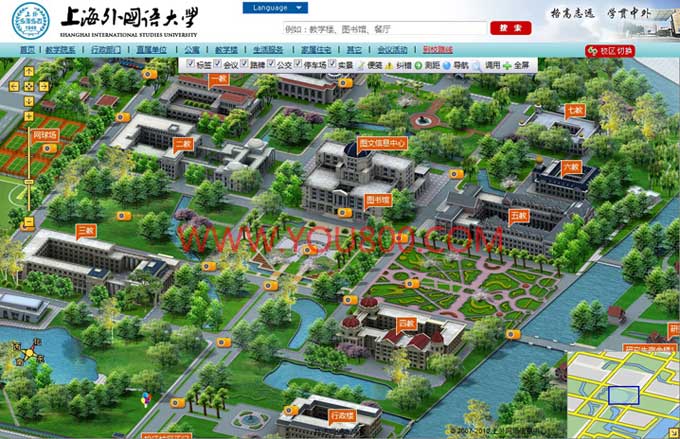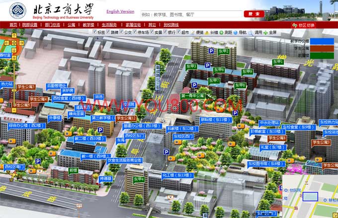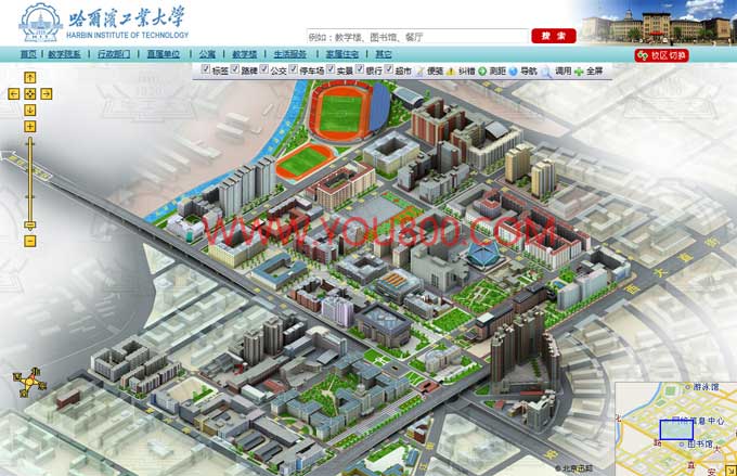 校園地圖系統(tǒng)可將校內(nèi)的所有機構設置進行導航定位,并提供地圖信息查詢包括機關部處、直屬單位、學院(系),提供單位詳情、電話、導航、本樓其他單位、網(wǎng)站鏈接、樓宇平面圖、全景瀏覽等。